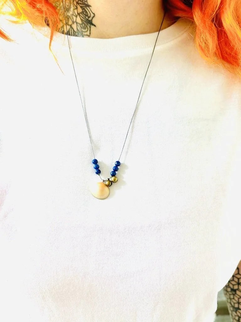 Alle Ketten der Edition sind mit natürlichen Lapislazuli-Steinen in Kugelform geknüpft. Farblich greift der Lapislazuli das tiefe Blau des Ozeans auf, wie auch unseren Blick von der Erde aus in die Tiefen des Alls. In der Steinheilkunde wird dem Lapislazuli die Eigenschaften zugesprochen, unsere Intuition und das Selbstbewusstsein zu stärken. Er wird in vielen Kulturen als ein Stein der Freundschaft, Liebe und Weisheit verehrt. Auf den Körper wird dem Lapislazuli eine krampflösende und beruhigende Wirkung nachgesagt.